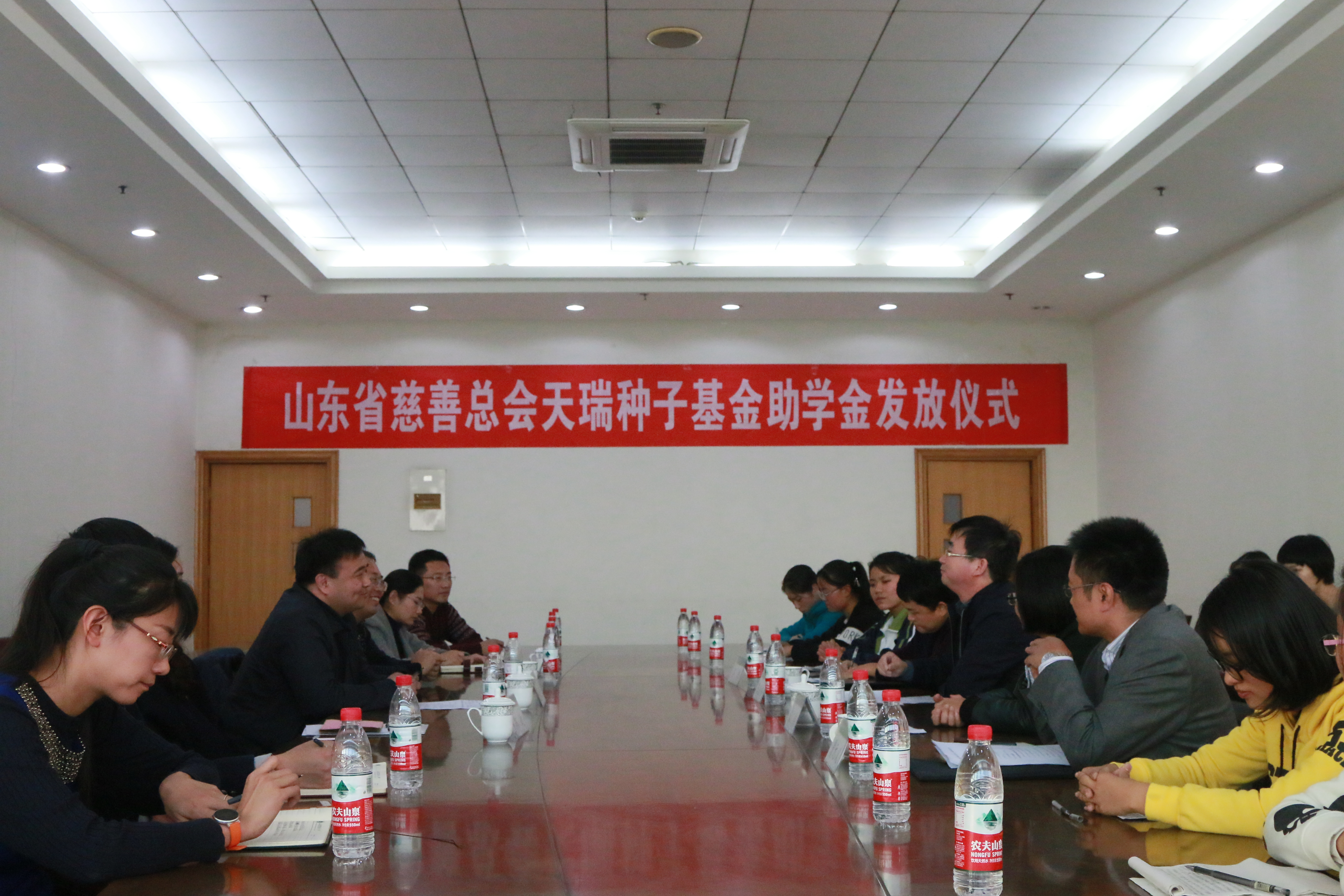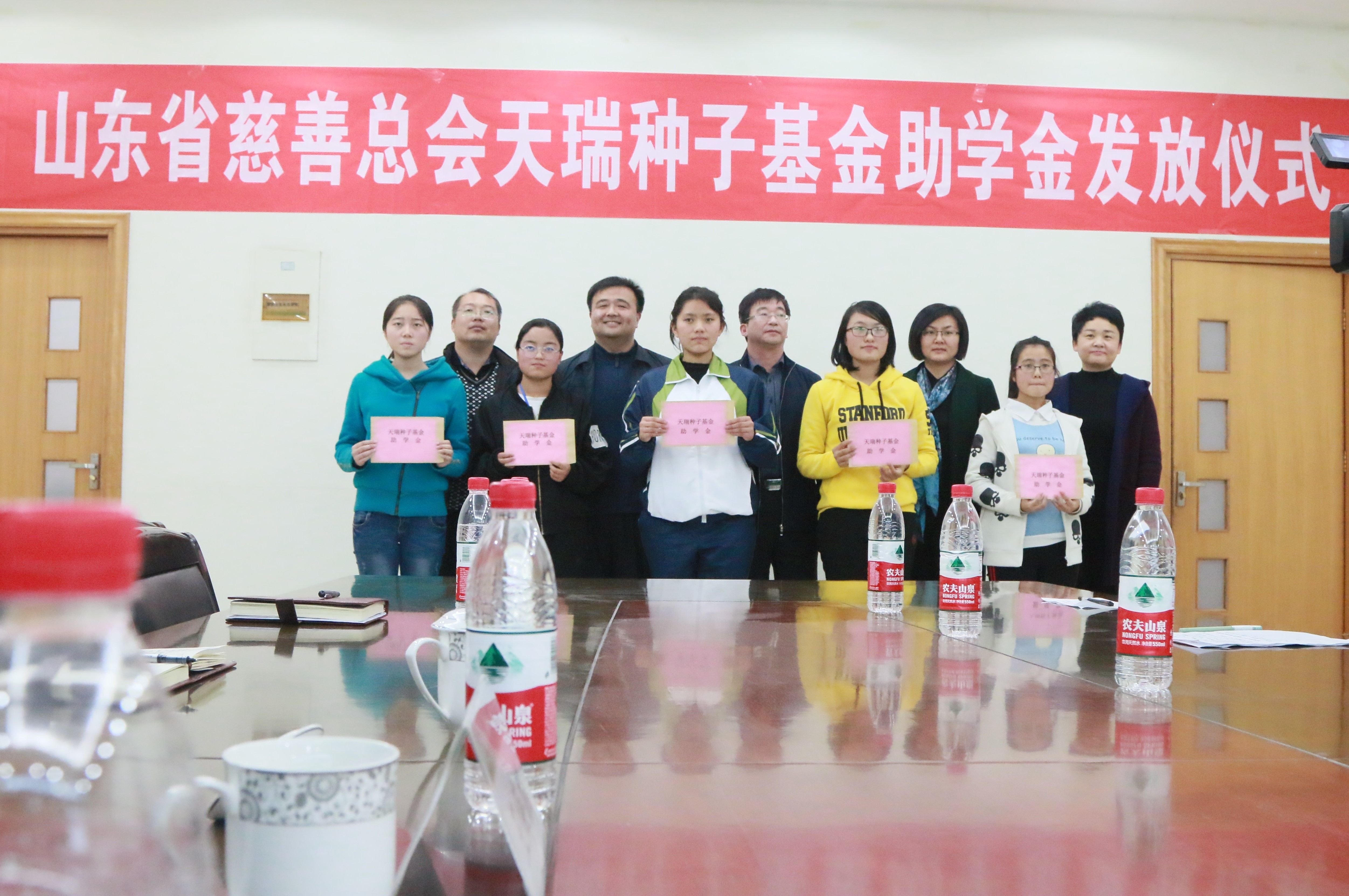 11月3日,山东省慈善总会天瑞种子基金助学金发放仪式在南校区举行。省慈善总会副会长兼秘书长张彦龙、济南天瑞种子有限公司总经理王海鹏、经管学院院长陈盛伟、学工处副处长宋伟以及经管学生工作人员参加发放仪式,并与受助学生亲切座谈。