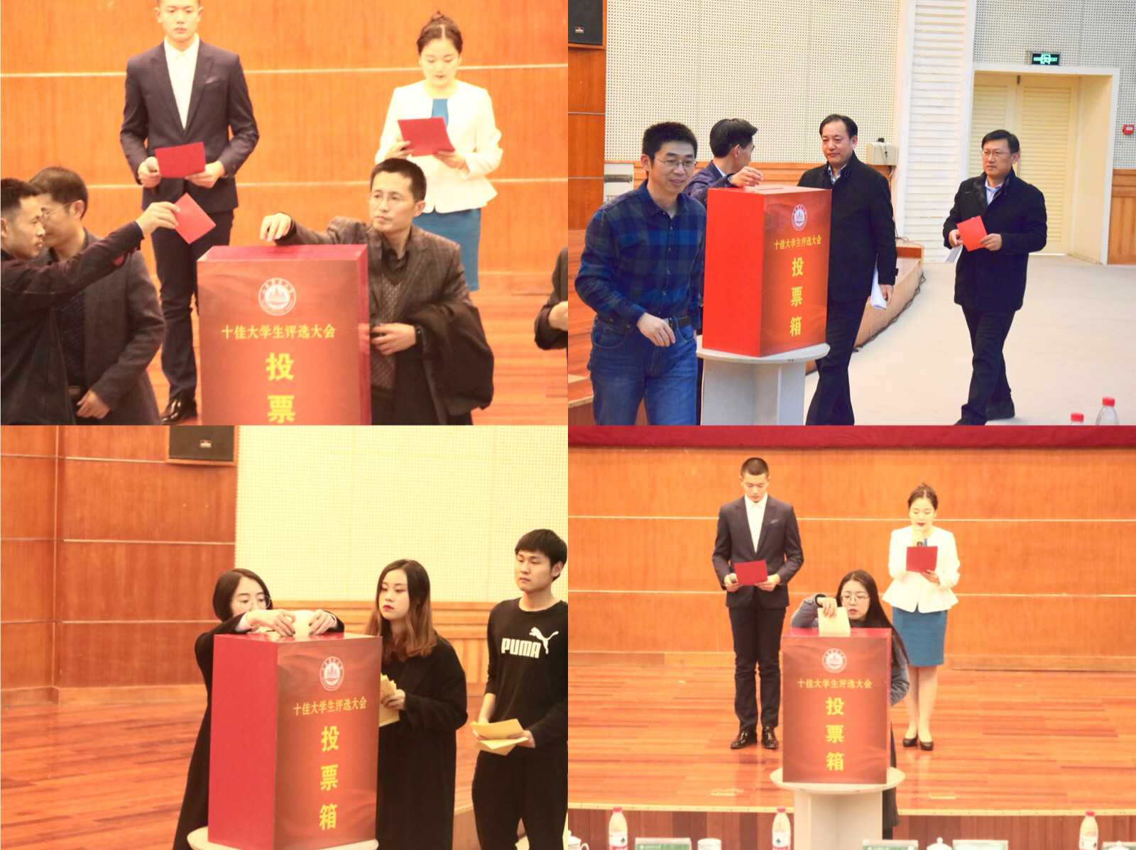 “十佳百优大学生”评选活动由学工处、教务处、校团委主办,经管学院承办,面向全校本科生,整个活动历时一个多月。“百优”大学生由学院推荐产生,并从中产生17名“十佳”大学生候选人。17名候选人经过网络投票、三校区现场投票和评选大会投票三个阶段的比赛,最终评选出“十佳大学生”。