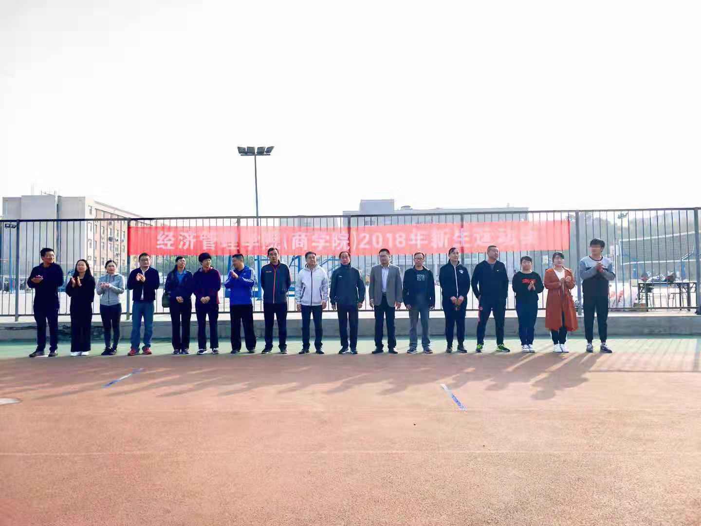 10月13日,经管学院(商学院)2018级新生运动会在南校区北操场举行。经管学院党委书记魏立政、学院部分领导、专业任课老师以及辅导员老师们与2018级千余名新生参与了此次运动会。学校群体部主任陈令伟给予了全程指导。