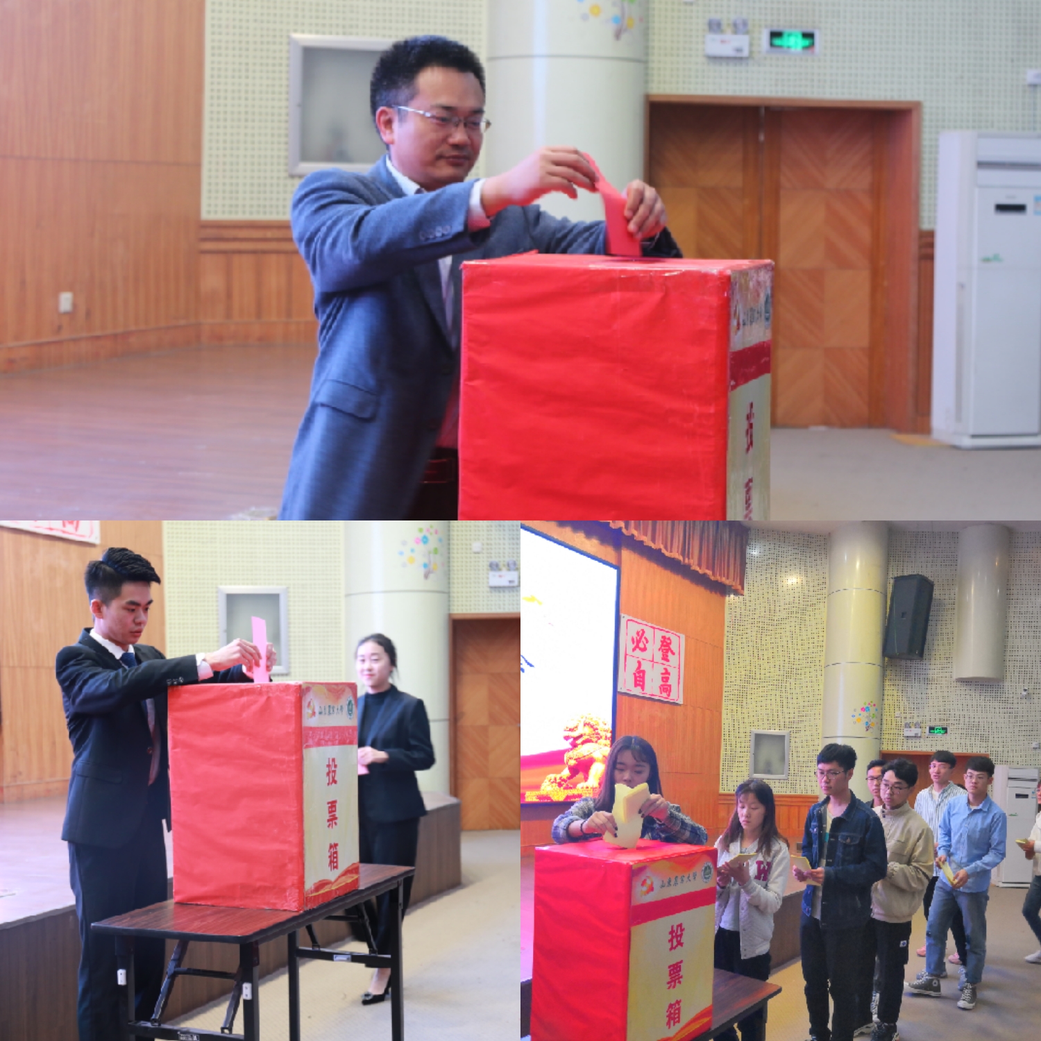 竞选大会在学生会主席姜佳浩的主持下顺利进行。本次竞选分为PPT竞选演讲、答辩、现场投票三个环节,共有六位主席候选人参选,他们分别围绕自身竞选优势、工作认识、工作展望三个方面进行了精彩的竞选演讲。在场的老师和同学们对六位候选人进行了提问,答辩过程中候选人从容镇定、自信沉着,展示了他们出色的综合素质与工作能力,得到了在场老师与学生的一致好评。随后,老师和学生代表进行了投票。