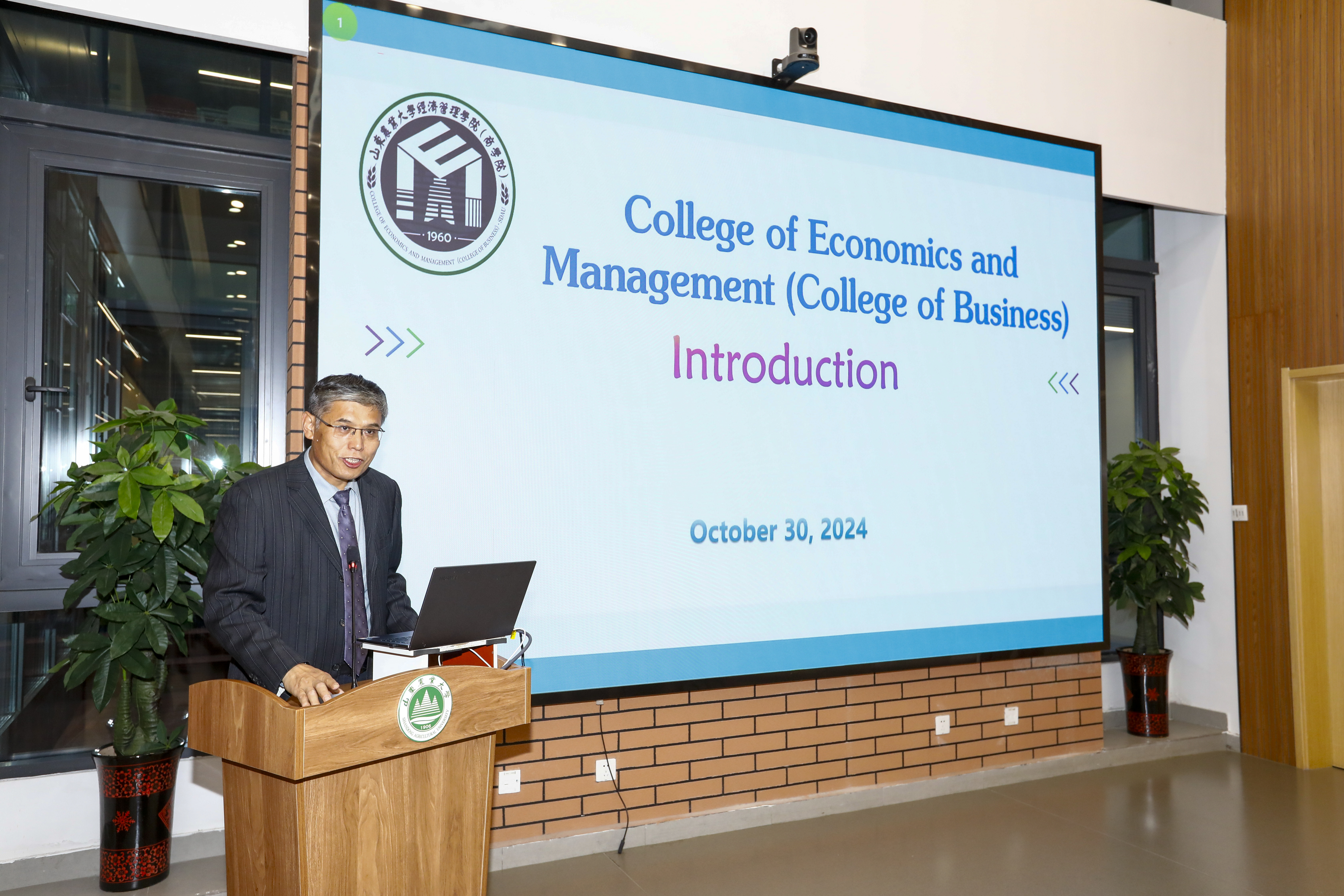 经济管理学院院长周玉玺发表致辞,向前来访问的国际友人表示衷心的感谢,并向大家介绍了学院的历史沿革,在教育教学、创新创业、科学研究和社会服务等方面的取得的成绩。代表团团长、卢布尔雅那大学Danijela Voljc和Tomaz Turk对学校、学院的热情接待表示了衷心的感谢,对学院5位访学同学在卢布尔雅那大学的表现给予高度评价,围绕师生互派、课程开发、合作办学等方面进行深入讨论交流。刚刚从斯洛文尼亚卢布尔雅那大学结束访学同学详细介绍了在斯洛文尼亚的学习和生活情况。