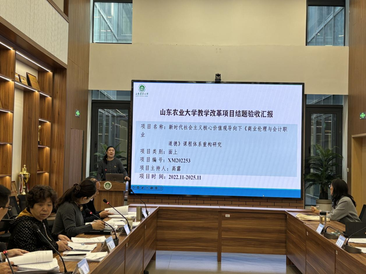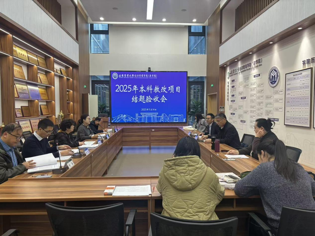11月14日下午,学院在泮河校区西北片区行政楼中央会议室成功召开2022和2023年校级本科教学改革研究项目结题验收会。本次结题验收会邀请了齐鲁学堂副院长刘会香教授、继续教育学院副院长王东红教授、动物医学院闫俊副教授以及经管学院方金教授和袁建华教授五位专家担任结题评审专家,刘会香教授担任专家组组长。学校党委常委、副校长、学院院长周玉玺教授及各课题组负责人、各教改项目主持人及团队成员参加会议,会议由副院长崔丙群教授主持。