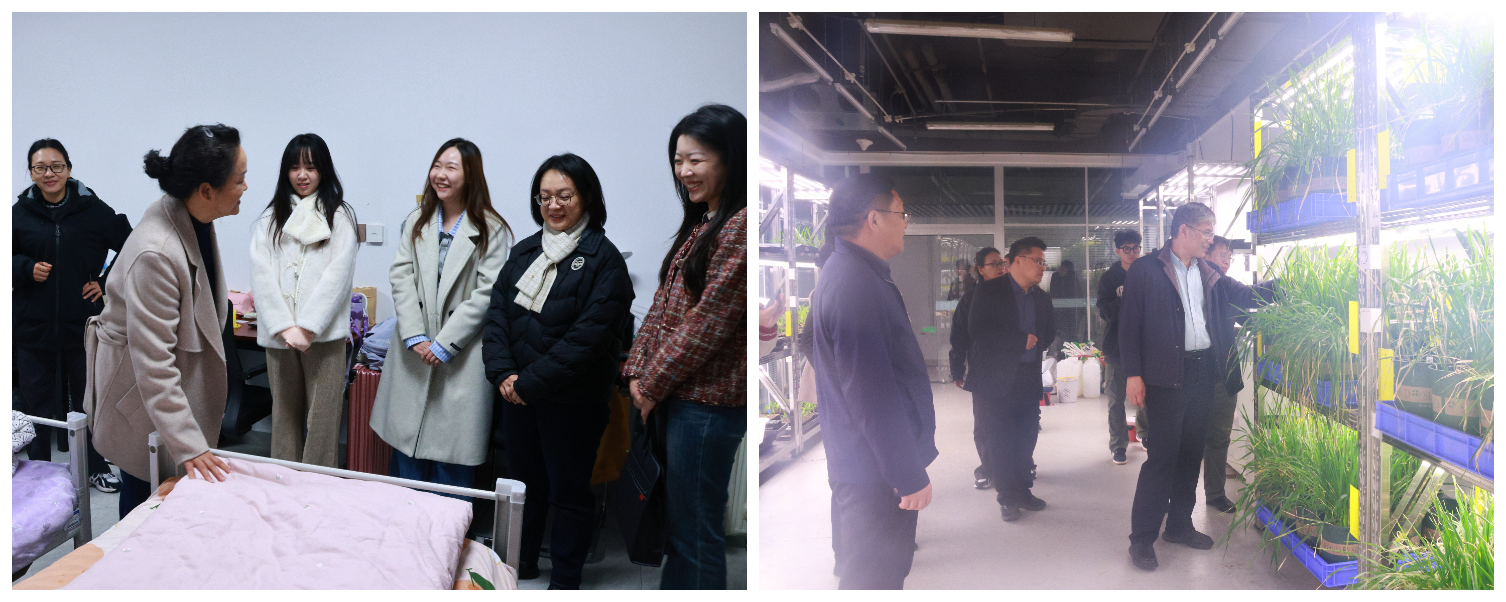 餐后,实地走访了学生宿舍、授课教室、学习室及实验室等场所,全面考察同学们的居住条件、学习环境与科研设施保障情况。走访中,齐清书记特别叮嘱同学们,在专注科研的同时,务必注意劳逸结合,牢固树立安全意识,确保以健康的身心状态圆满完成科研任务。