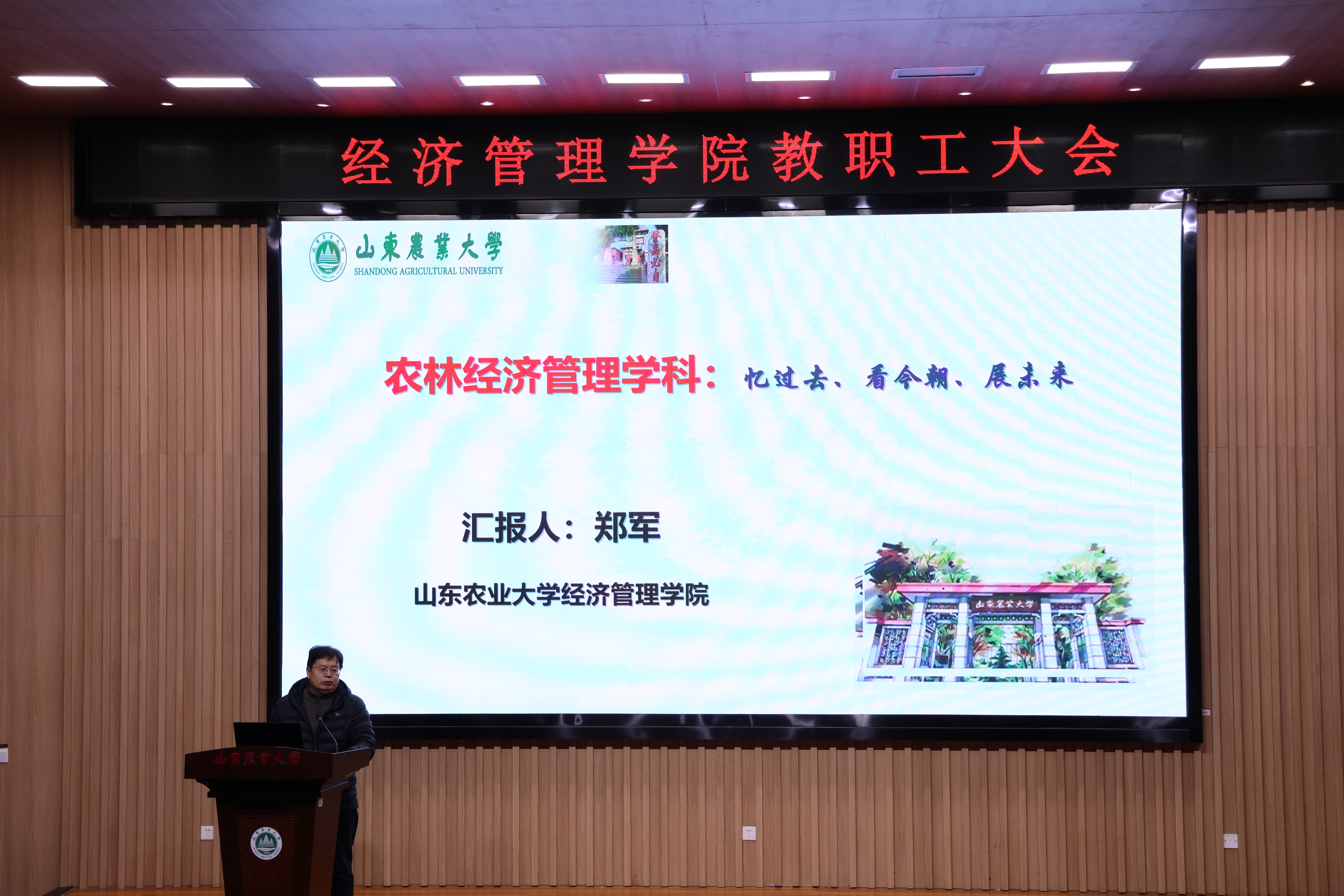 教授委员会主任郑军以“忆过去、看今朝、展未来”为题,就农林经济管理学科建设工作做了报告。
